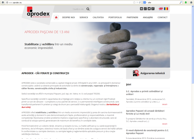 Website-ul dezvoltat de Webmagnat doreşte să reflecte identitatea de brand a companiei APRODEX printr-o interfaţă ce asigură uşurinţa navigării.
